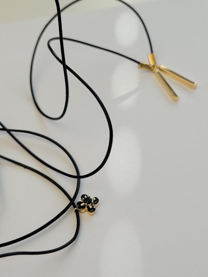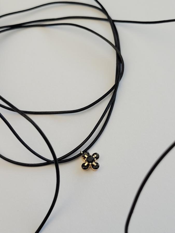 Kúsok rebelstva s nežným pozláteným kvetom. Kožená šnúrka s pozlátenými komponentami. Prispôsob si ju ako len chceš. Divokosť je v nás prirodzená. Rodíme sa s ňou, tak ako všetko živé na zemi. Tvoj hravý kúsok šperku, ktorý ti to bude stále šepkať.