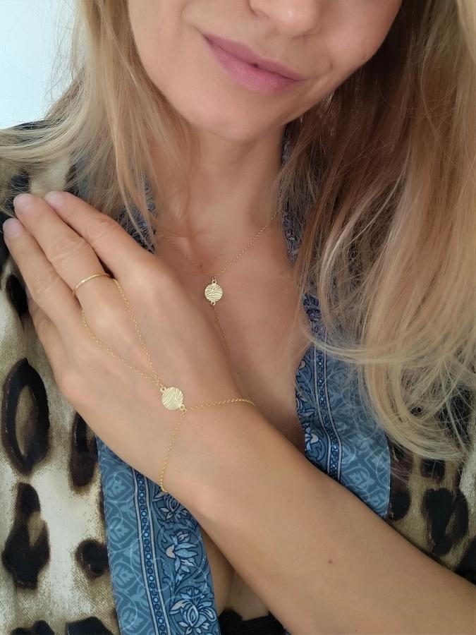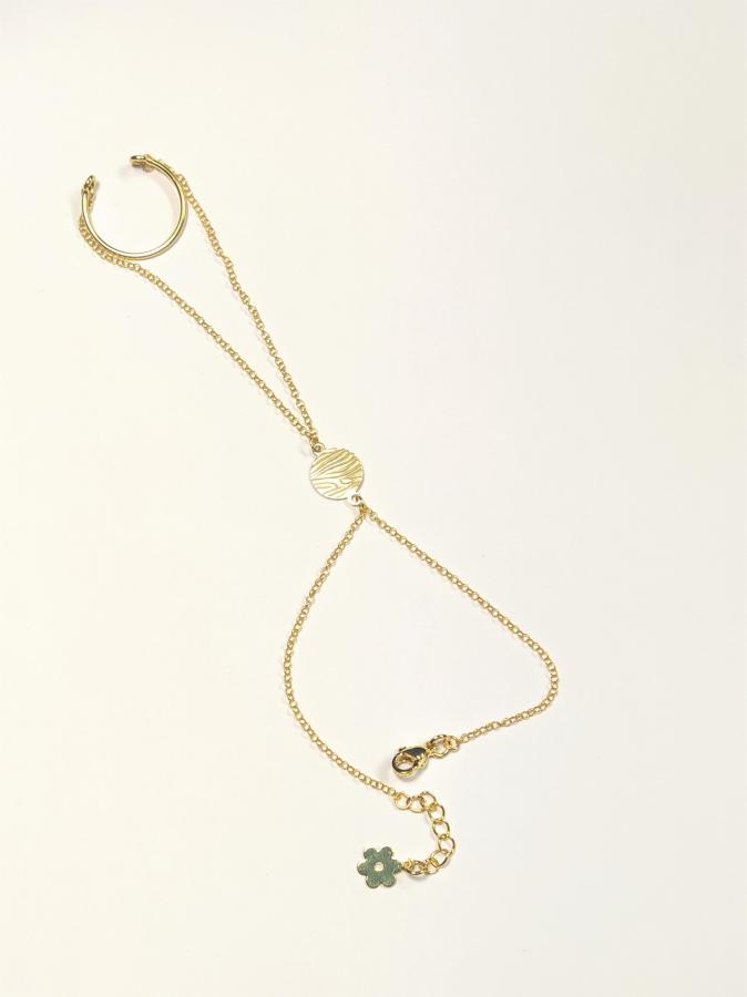 Pozlátený náramok s prsteňom Fauna z kolekcie autorských šperkov Fauna a Flóra. Divokosť je v nás prirodzená. Rodíme sa s ňou, tak ako všetko živé na zemi. Tvoj nežný kúsok šperku, ktorý ti to bude stále šepkať.
