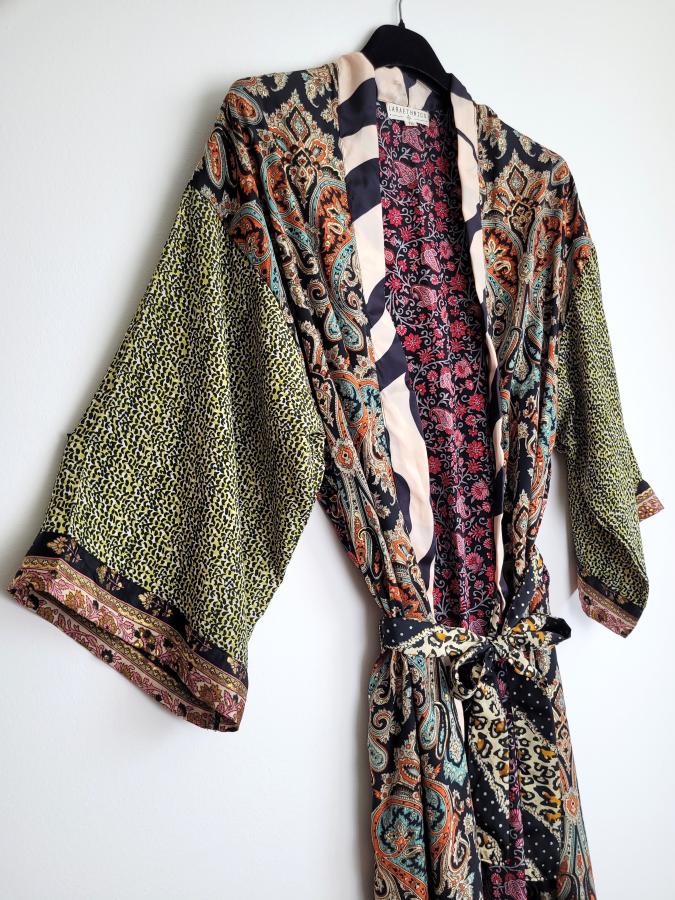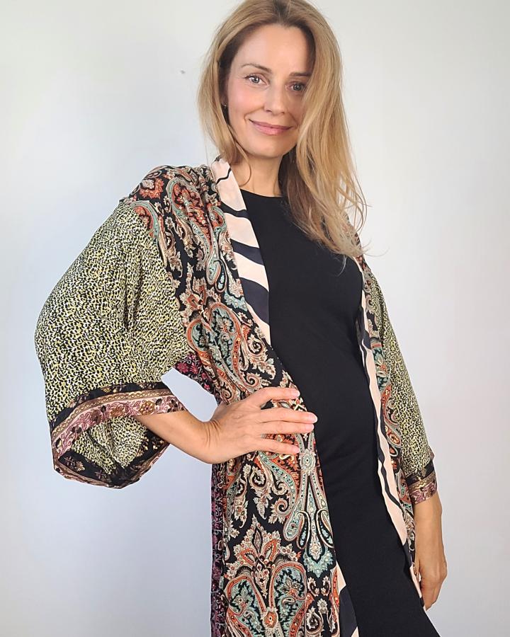 Kaftan s kašmírovým vzorom na čiernom podklade
