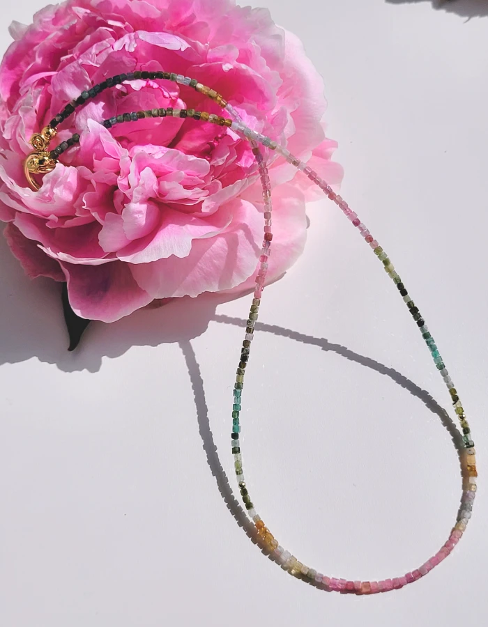Kolekcia Leila, ručne vyrábaná s láskou, spája kúzlo ochranného kameňa s luxusom pozlátených komponentov. Každý kúsok z kolekcie rozpráva príbeh ženy, ktorá nosí vnútornú silu a lásku Venuše ako svoj najväčší šperk. Turmalín symbolizuje harmóniu protikladov, rovnováhu energií a vzájomné pochopenie.