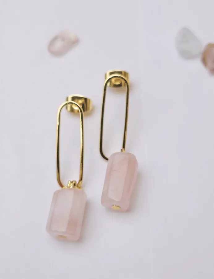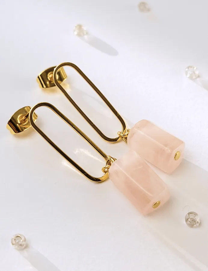 Minimalistické náušnice z pozlátených komponentov a prírodného kameňa Fluorit. Fluorit je minerál, ktorý je známy svojou krásou a rozmanitosťou farieb, ako aj svojimi metafyzickými vlastnosťami, ktoré zahŕňajú ochranu, jasnosť a duchovnú očistu.