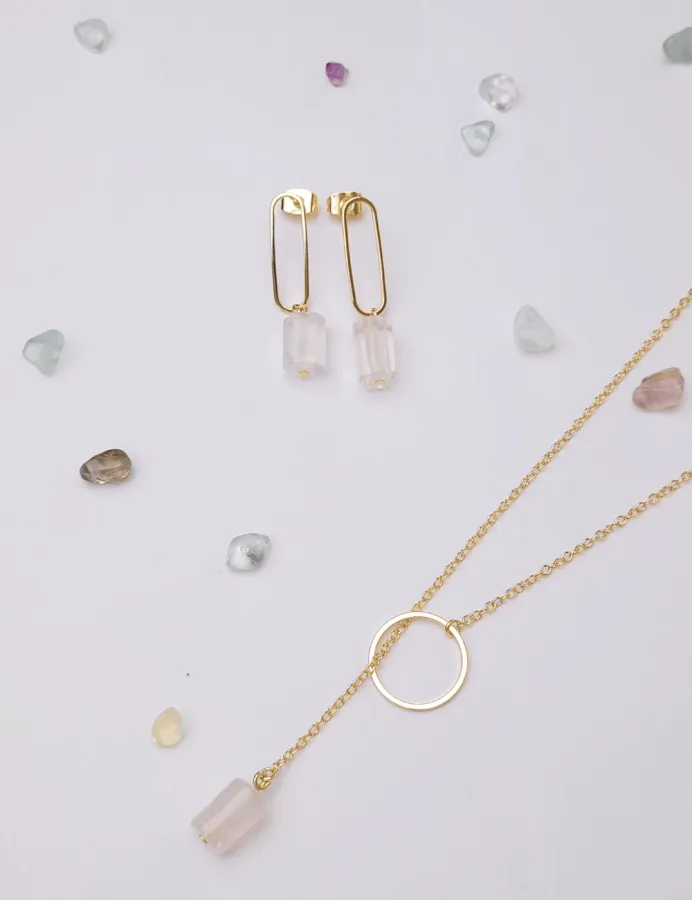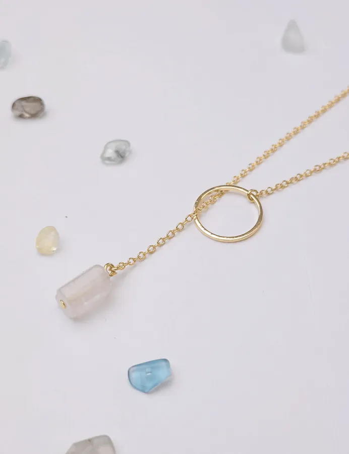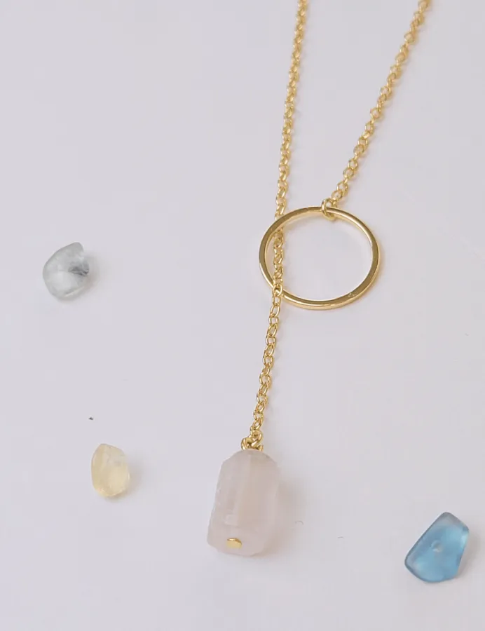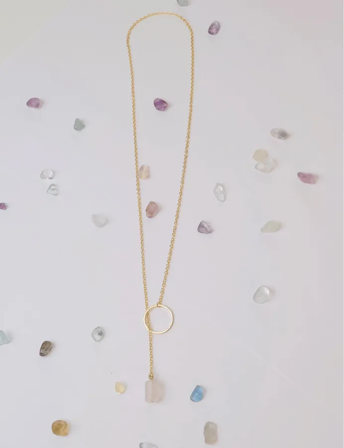 Minimalistický prevliekací pozlátený náhrdeľník s priehľadným kameňom Fluorit