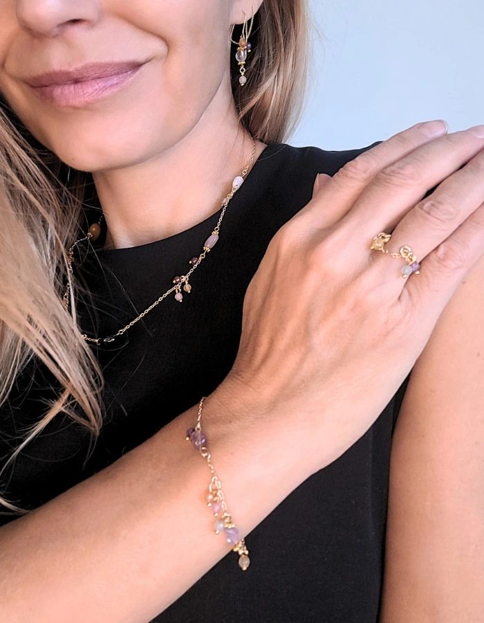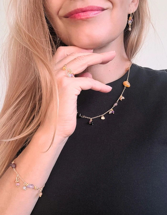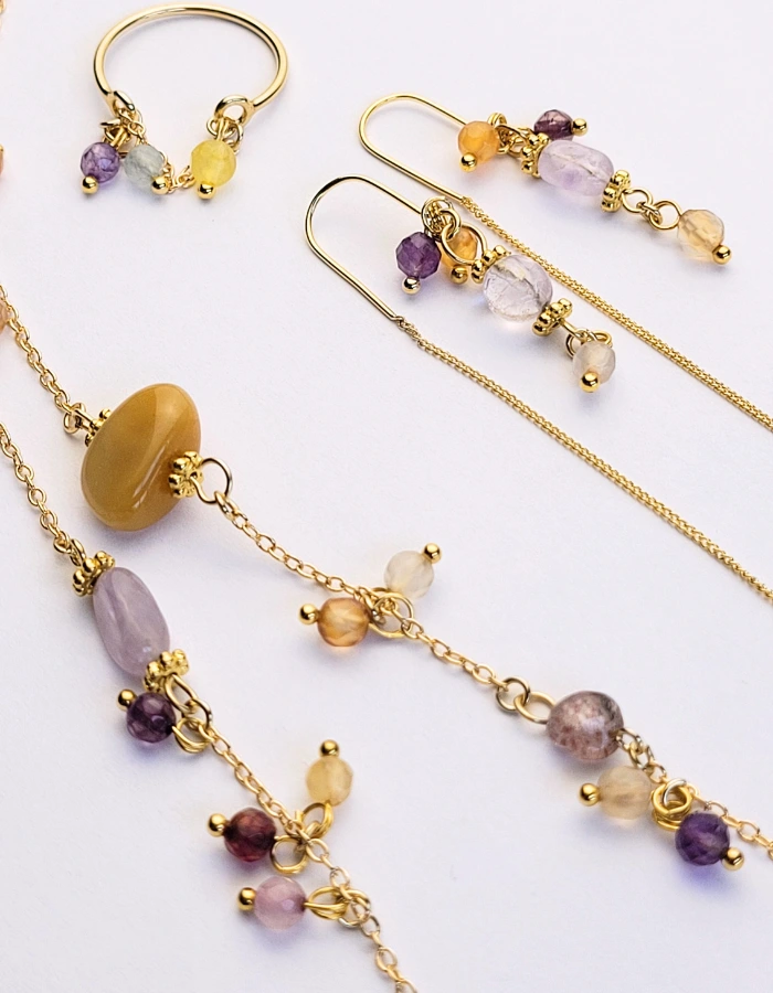 Elegantná, ženská a plná svetla – kolekcia Violetta spája pozlátené detaily s farebnými minerálmi, ktoré spolu vytvárajú jemnú harmóniu.