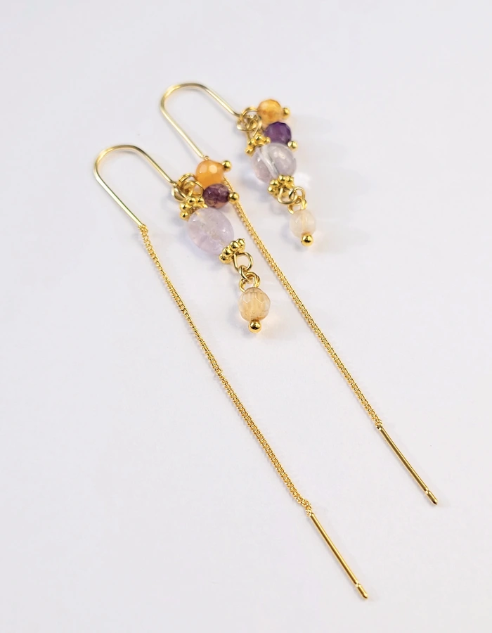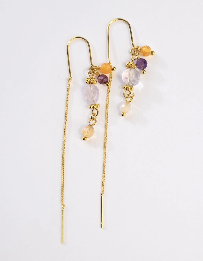 Náušnice z pozlátených komponentov a farebných minerálov.