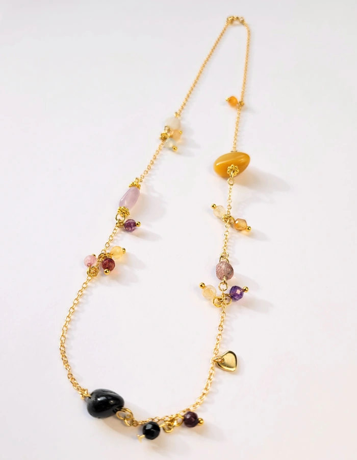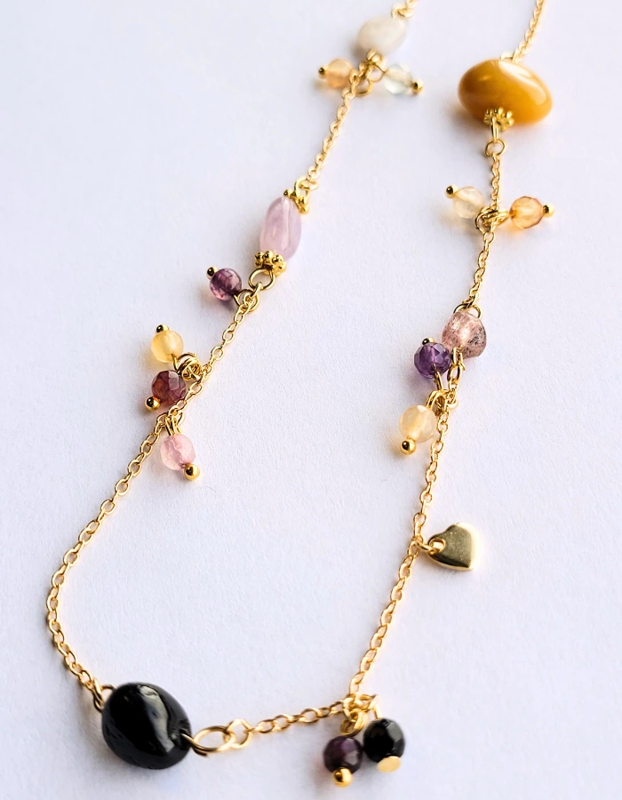 Pozlátený náhrdelník z kolekcie Violetta s farebnými minerálmi