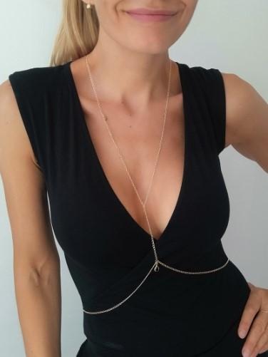 Kúsok ženskosti, ktorý si ťa namotá. Telová retiazka z kolekcie DEŇ je vyrobená z bižutérnych kovových komponentov, v teplej zlatej farbe. Zapína sa za krkom a na chrbte. Je to pán šperk sám o sebe, ale môžeš ho kombinovať aj s ostatnými originálnymi kúskami z kolekcie DEŇ a NOC.